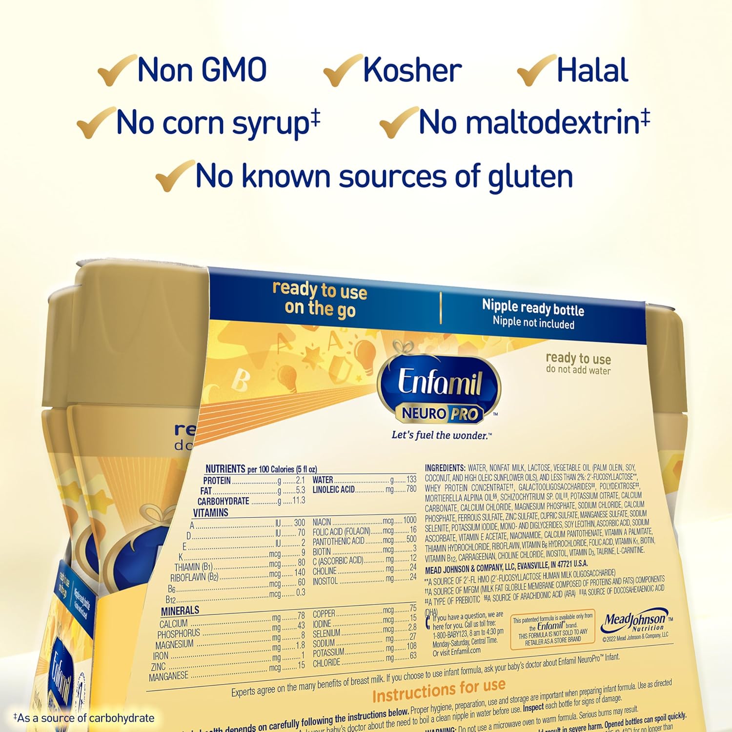 Customers find this baby formula to be a top-quality product that works well for newborns, with convenient ready-to-feed bottles that travel well in diaper bags. The formula receives positive feedback for its health benefits, with one customer noting it helps develop the baby’s brain, and another mentioning it’s lifesaving during late-night feedings and outings. While some customers find it a great value, others consider it expensive, and experiences with digestive issues are mixed, with some reporting no problems while others mention vomiting. The product’s shelf life receives mixed reviews, with some finding it very fresh while others report spoilage.