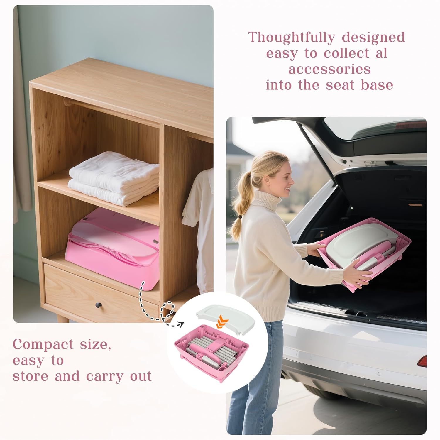 Portable And Easy to Store: The portable high chair can be quickly assembled without tools. It can be converted into a small dining chair, suitable for children to play and eat at the dining table. The package also includes a strap for easily securing the booster seat to most dining chairs. All accessories can be folded and stored under the seat, and the high chair can be folded into a small box for easy storage.