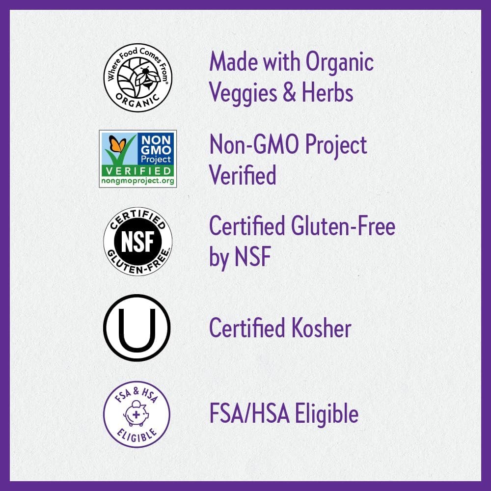 1st PRENATAL VITAMIN to be made with Certified Organic Vegetables & Herbs, Non-GMO Project Verified, 100% Vegetarian, Certified Kosher, Certified Gluten-Free by NSF, No Added Sugar, No Synthetic Fillers, No Artificial Colors or Flavors, No Animal Gelatin